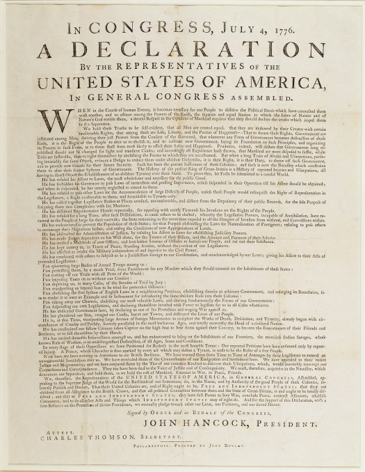 Nel 1989 un analista finanziario appassionato di antichità comprò in un mercatino delle pulci ad Adamstown, Pennsylvania, un vecchio quadretto raffigurante una scena campestre, perché gli piaceva la cornice; infatti l’intenzione dell’uomo era quella di comprare il dipinto, costava appena 4 dollari, per poi recuperare la cornice e restaurarla. Tornato a casa, provò a staccare la cornice che si ruppe, ma rivelò qualcosa di inaspettato: nel retro del quadro, tra la tela e la base di legno, era contenuto un documento piegato. Fece esaminare il ritrovamento ad un esperto del settore che costatò che si trattasse di una delle copie della prima stampa della Dichiarazione d’Indipendenza, stampata il 4 Luglio 1776 da John Dunlap. Fino a quel momento si era a conoscenza dell’esistenza di 24 copie, 3 delle quali appartenevano a privati cittadini.